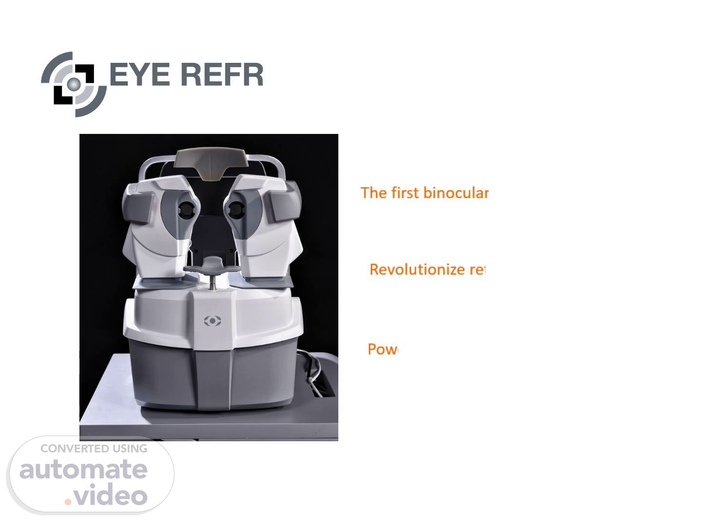 EYE REFR. The first binocular dynamic eye exam.. Revolutionize refraction management..