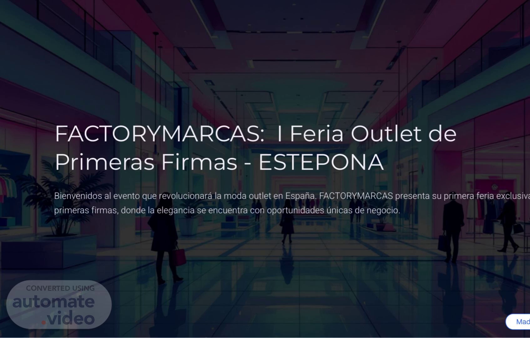 [Audio] FACTORYMARCAS: I Feria Outlet de Primeras Firmas - ESTEPONA Bienvenidos al evento que revolucionará la moda outlet en España. FACTORYMARCAS presenta su primera feria exclusiva de primeras firmas, donde la elegancia se encuentra con oportunidades únicas de negocio..