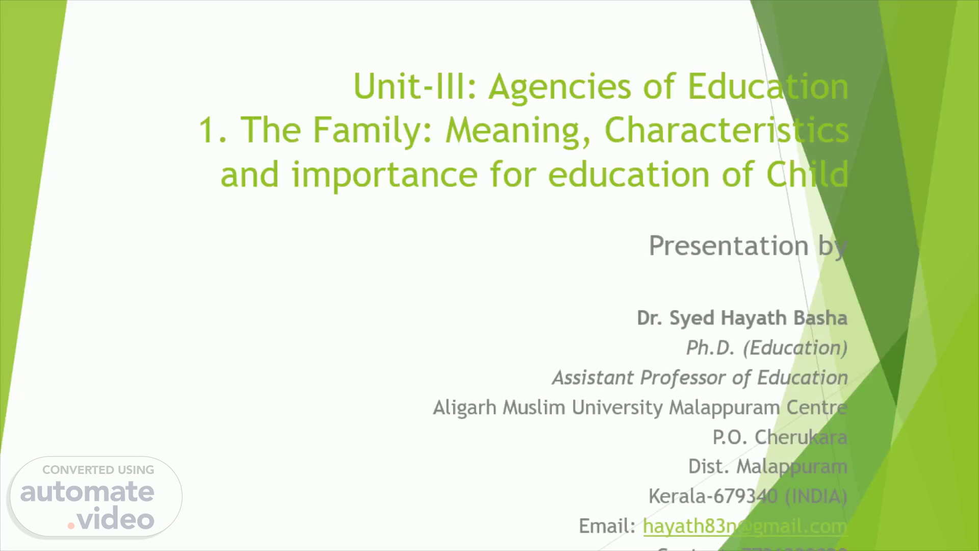 Unit-III: Agencies of Education 1. The Family: Meaning, Characteristics and importance for education of Child