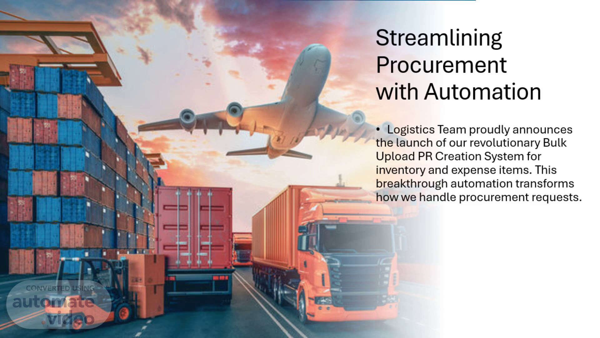 Our Automation Solution. The new Bulk Upload PR Creation module revolutionizes our procurement process through intelligent automation. By leveraging standardized Excel templates, we've eliminated manual bottlenecks while ensuring complete accuracy and compliance..