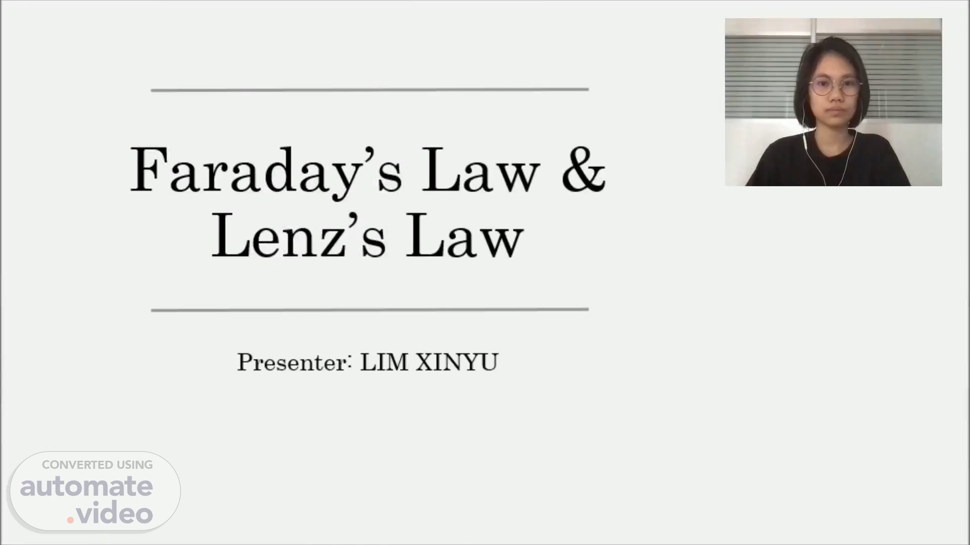 Faraday’s Law & Lenz’s Law. Presenter: LIM XINYU.