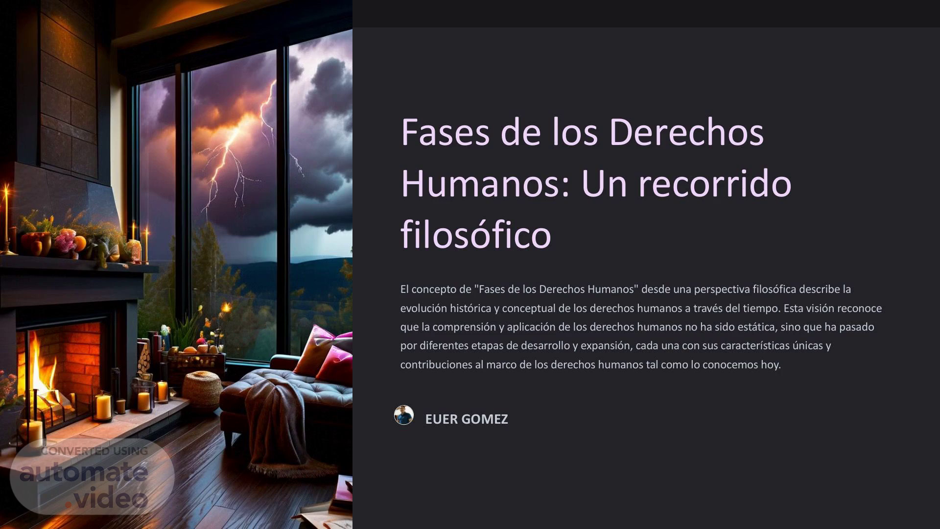 Fases de los Derechos Humanos: Un recorrido filosófico El concepto de "Fases de los Derechos Humanos" desde una perspectiva filosófica describe la evolución histórica y conceptual de los derechos humanos a través del tiempo. Esta visión reconoce que la comprensión y aplicación de los derechos humanos no ha sido estática, sino que ha pasado por diferentes etapas de desarrollo y expansión, cada una con sus características únicas y contribuciones al marco de los derechos humanos tal como lo conocemos hoy. EUER GOMEZ.
