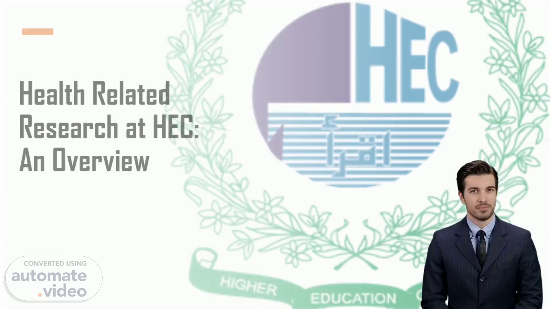 [Virtual Presenter] Good morning, everyone. It is my pleasure to present to you the Higher Education Commission in Islamabad and their support of research for health-related innovations, led by Ms. Noshaba Awais. This presentation will explain how the Higher Education Commission is helping to encourage and fund innovators, inventors, and aspiring entrepreneurs in Pakistan..