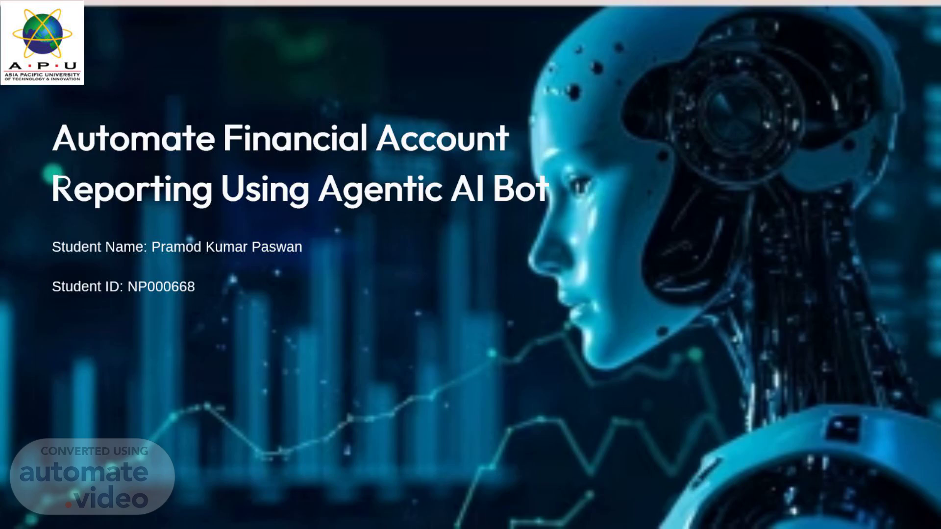 [Audio] Automate Financial Account Reporting Using Agentic AI Bot Student Name: Pramod Kumar Paswan Student ID: NP000668 University: Asia Pacific University of Technology and Innovation Supervisor: Mr. Rajan Raj Pant Final Year Project – 2026.