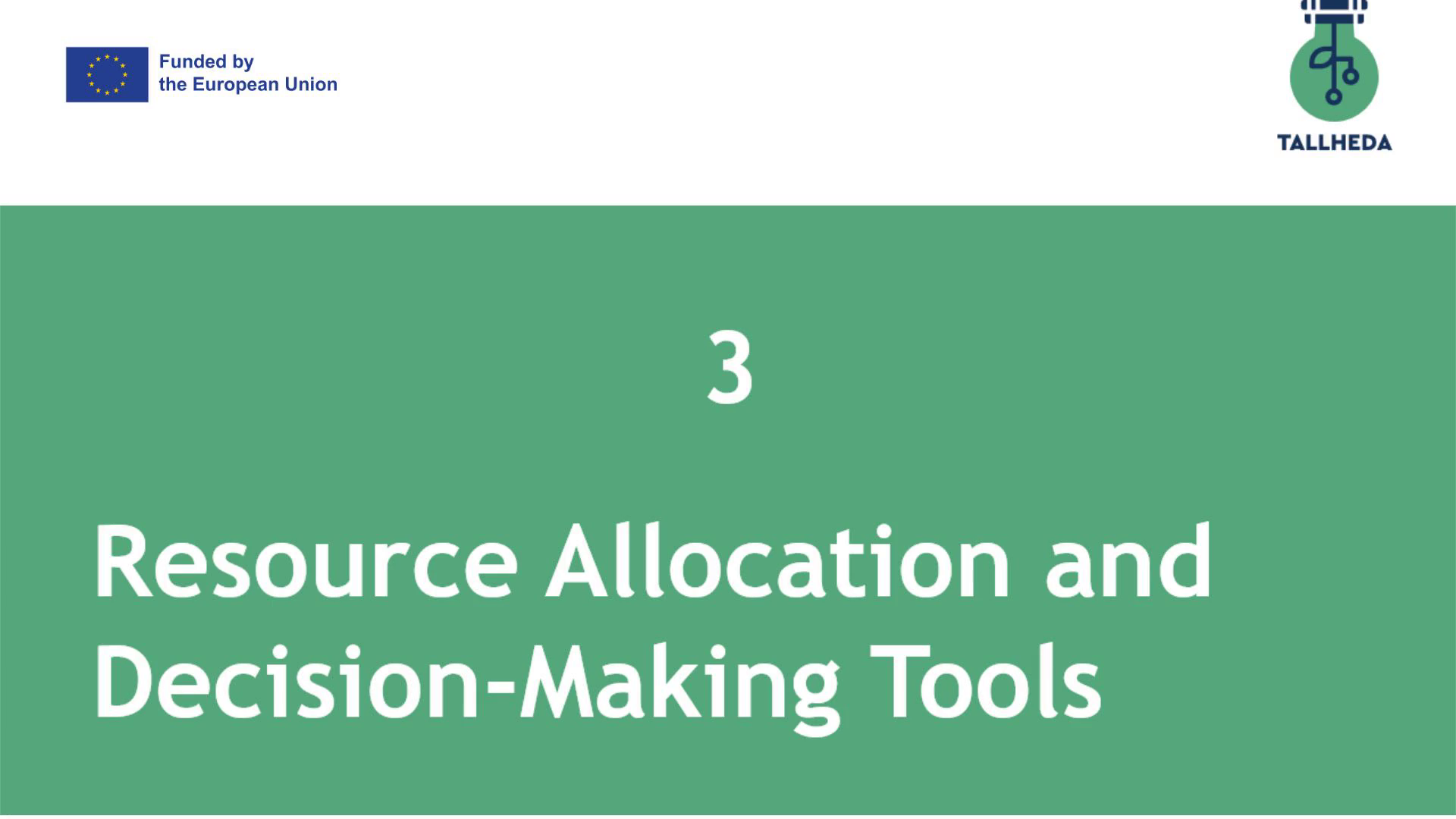 [Audio] Welcome to our 3rd module, called "Resource allocation and decision-making tools"..