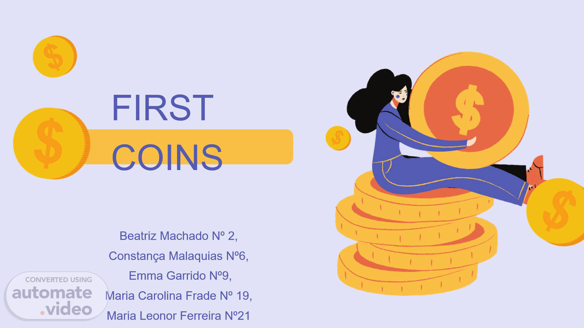 FIRST COINS. Beatriz Machado Nº 2, Constança Malaquias Nº6, Emma Garrido Nº9, Maria Carolina Frade Nº 19, Maria Leonor Ferreira Nº21 Turma: 6ªC.