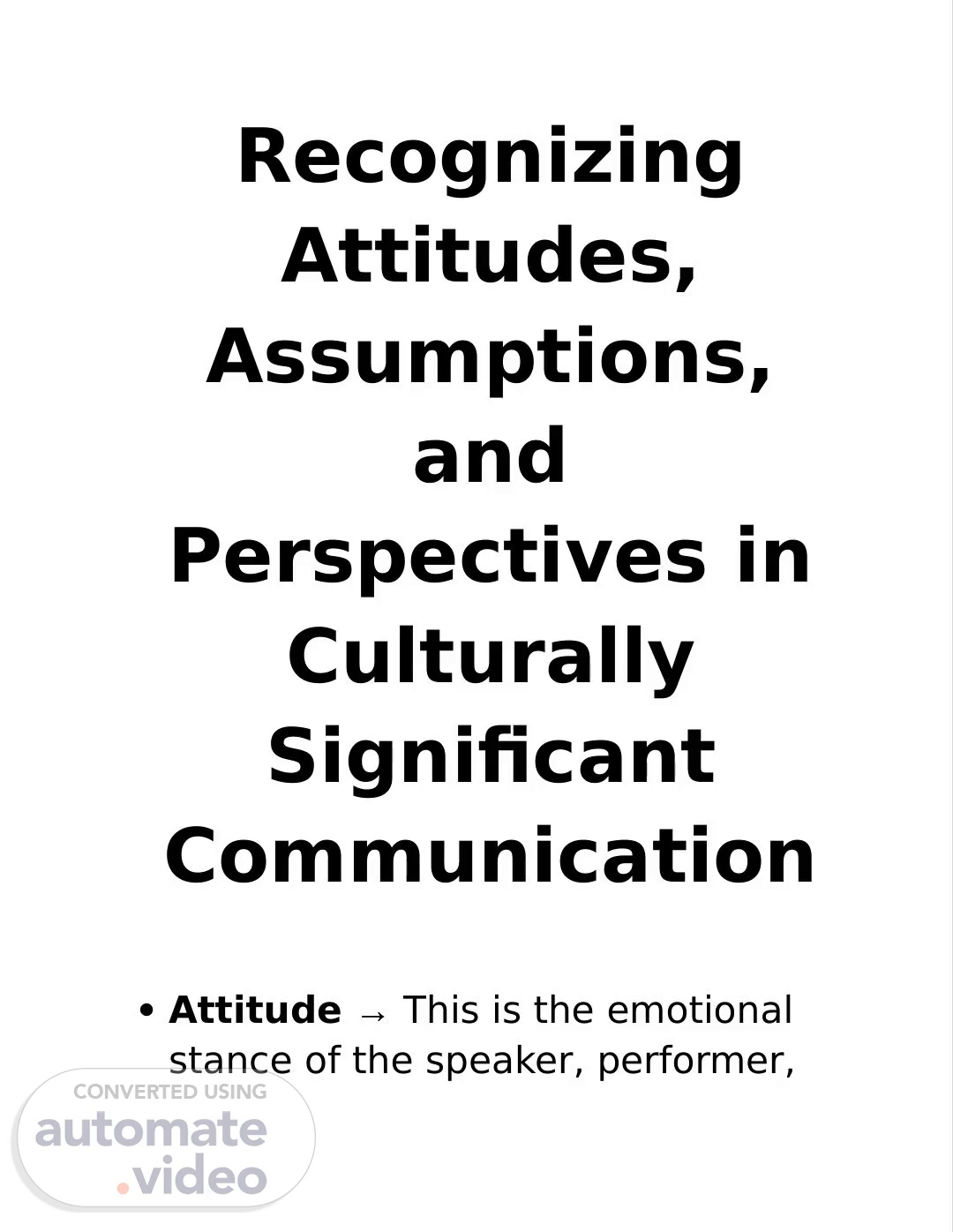 Recognizing Attitudes, Assumptions, and Perspectives in Culturally Significant Communication Attitude → This is the emotional stance of the speaker, performer,.