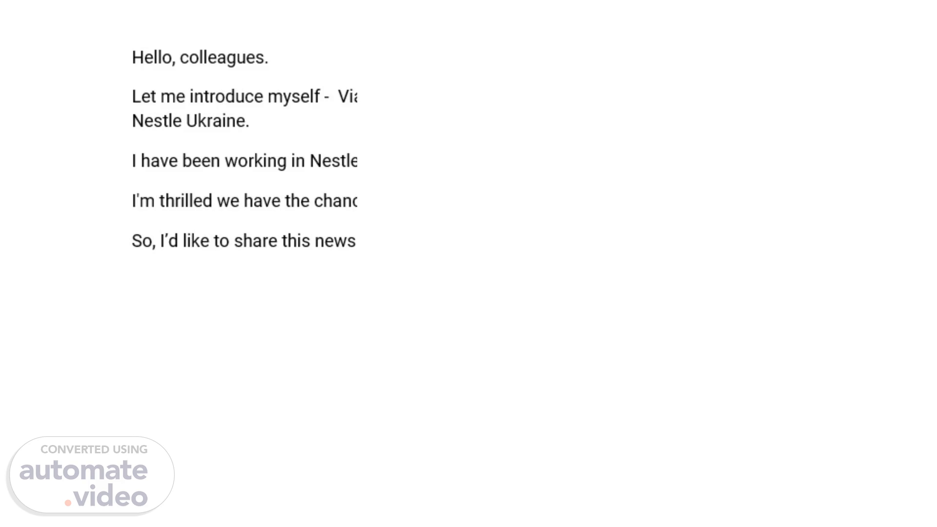 Hello, colleagues. Let me introduce myself - Viacheslav Shalomieiev, Workforce 360 & IT Platforms Specialist, Nestle Ukraine. I have been working in Nestle for a little over a month, so you may consider me a rookie :) I'm thrilled we have the chance to meet. So, I’d like to share this news with you..