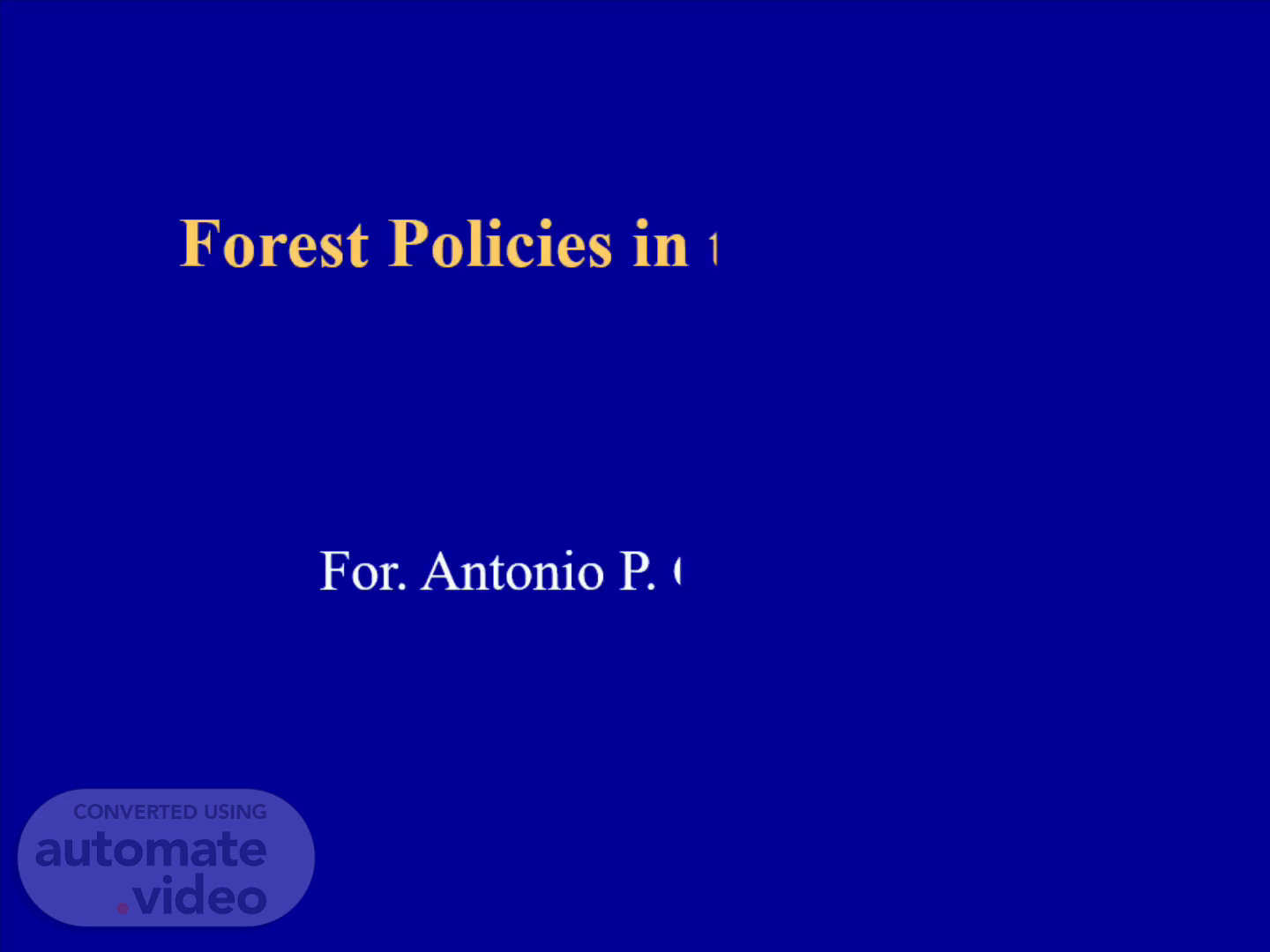 Forest Policies in the Philippines. For. Antonio P. Carandang.