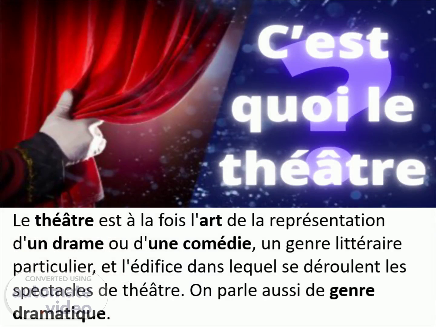 qugg Ie théåtre. Le théâtre est à la fois l' art de la représentation d' un drame ou d' une comédie , un genre littéraire particulier, et l'édifice dans lequel se déroulent les spectacles de théâtre. On parle aussi de genre dramatique ..