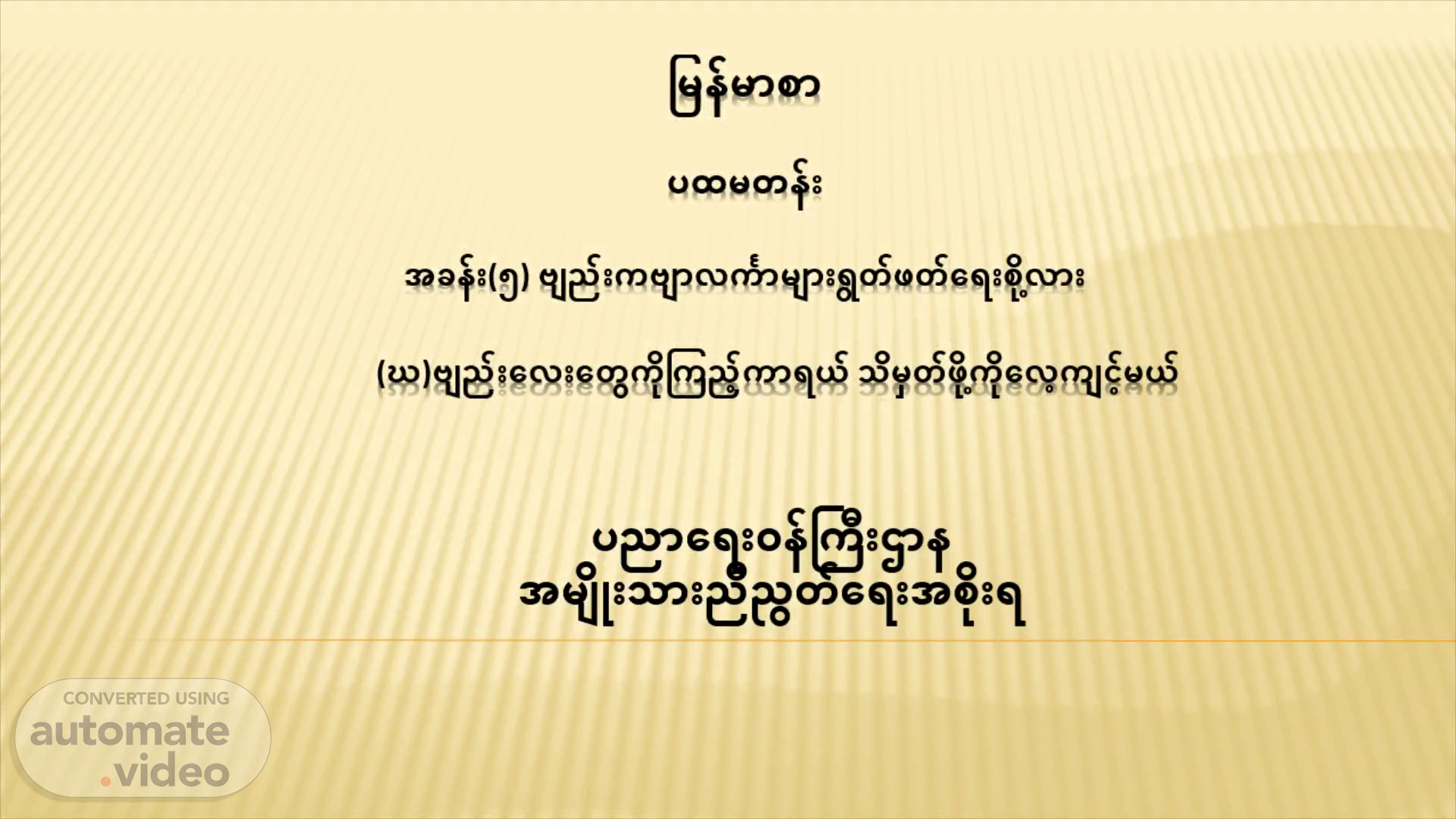 မြန်မာစာ ပထမတ န ် း အခန်း(၅) ဗ ျ ည ် း ကဗျာလင်္ကာမျ ာ း ရ ွ တ ် ဖ တ ် ရေးစို ့ လား ( ဃ ) ဗ ျ ည ် း လေး တ ွ ေကိုကြည ့် ကာရယ ် သိမှတ်ဖို့ကို လ ေ ့ ကျင ့် မယ ်.