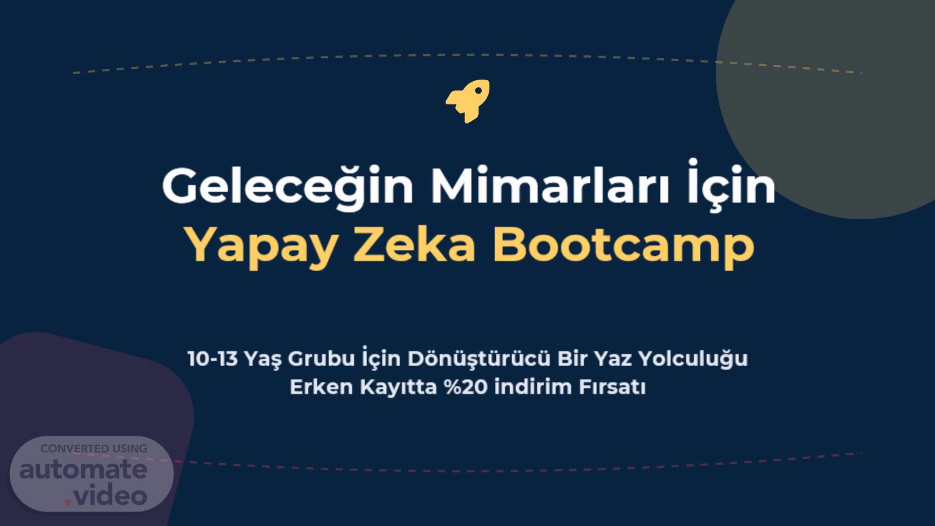 [Audio] Peki, neden yapay zeka ve neden şimdi? Çünkü yapay zeka artık bir seçenek değil, geleceğin temel yetkinliğidir. Çocuklarımız dijital okuryazarlıkla, teknolojiyi sadece kullanmakla kalmayıp nasıl çalıştığını da anlayacaklar. Akademik başarıları için ödev ve araştırmalarda yapay zekayı etik ve verimli kullanmayı öğrenecekler. Yaratıcılıklarını besleyerek hayal güçlerini gerçeğe dönüştüren yeni nesil üretim araçlarıyla tanışacaklar. Ve en önemlisi, geleceğin mesleklerine bugünden hazır, donanımlı bireyler olarak adım atacaklar. Bu da bizi bootcamp'imizin vizyonuna getiriyor..