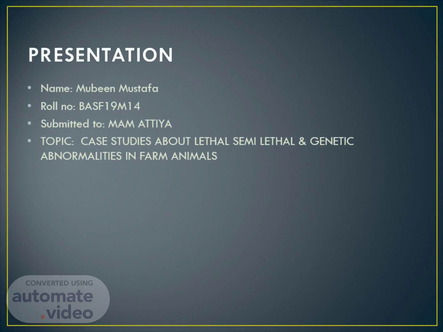 PRESENTATION. Name: Mubeen Mustafa Roll no: BASF19M14 Submitted to: MAM ATTIYA TOPIC: CASE STUDIES ABOUT LETHAL SEMI LETHAL & GENETIC ABNORMALITIES IN FARM ANIMALS.
