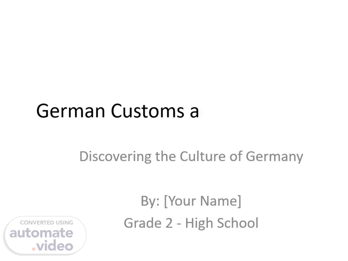 German Customs and Traditions. Discovering the Culture of Germany By: [Your Name] Grade 2 - High School.