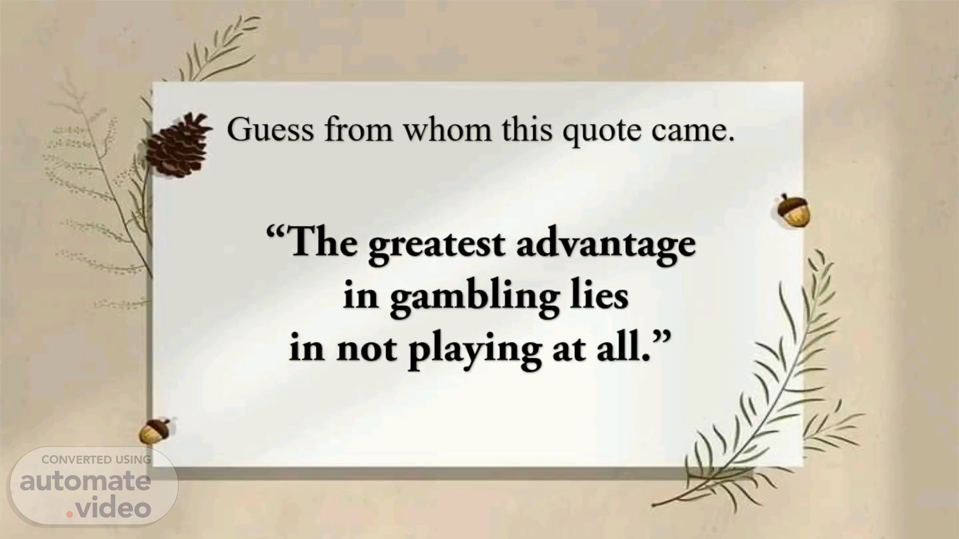 Guess from whom this quote came.. “The greatest advantage in gambling lies in not playing at all.”.