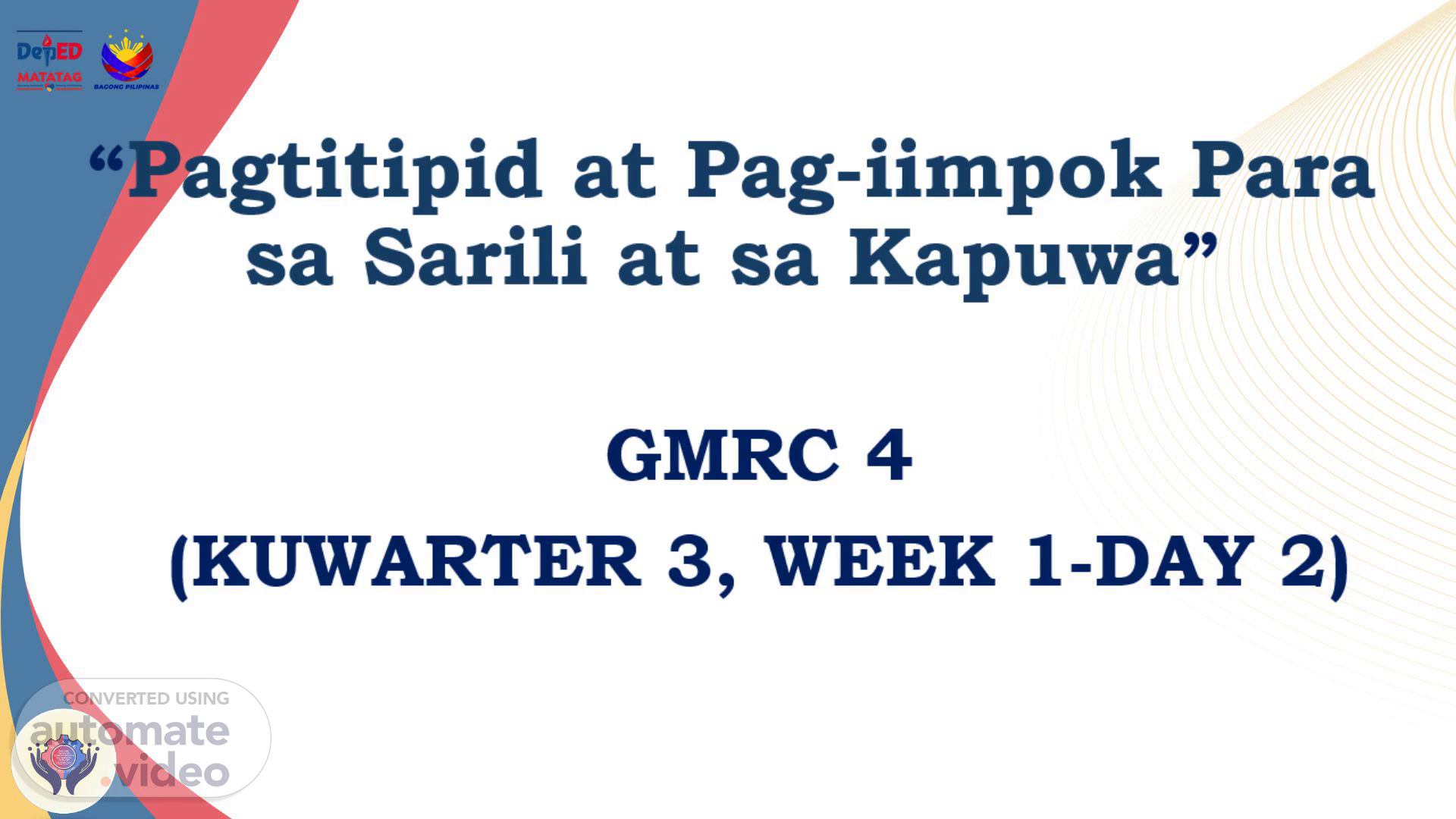 • NG03H. “Pagtitipid at Pag-iimpok Para sa Sarili at sa Kapuwa” GMRC 4 (KUWARTER 3, WEEK 1-DAY 2).