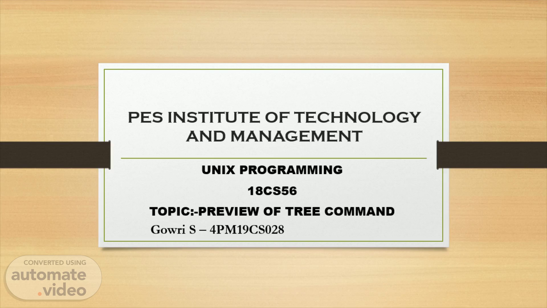 PES INSTITUTE OF TECHNOLOGY AND MANAGEMENT. UNIX PROGRAMMING 18CS56 TOPIC:-PREVIEW OF TREE COMMAND.