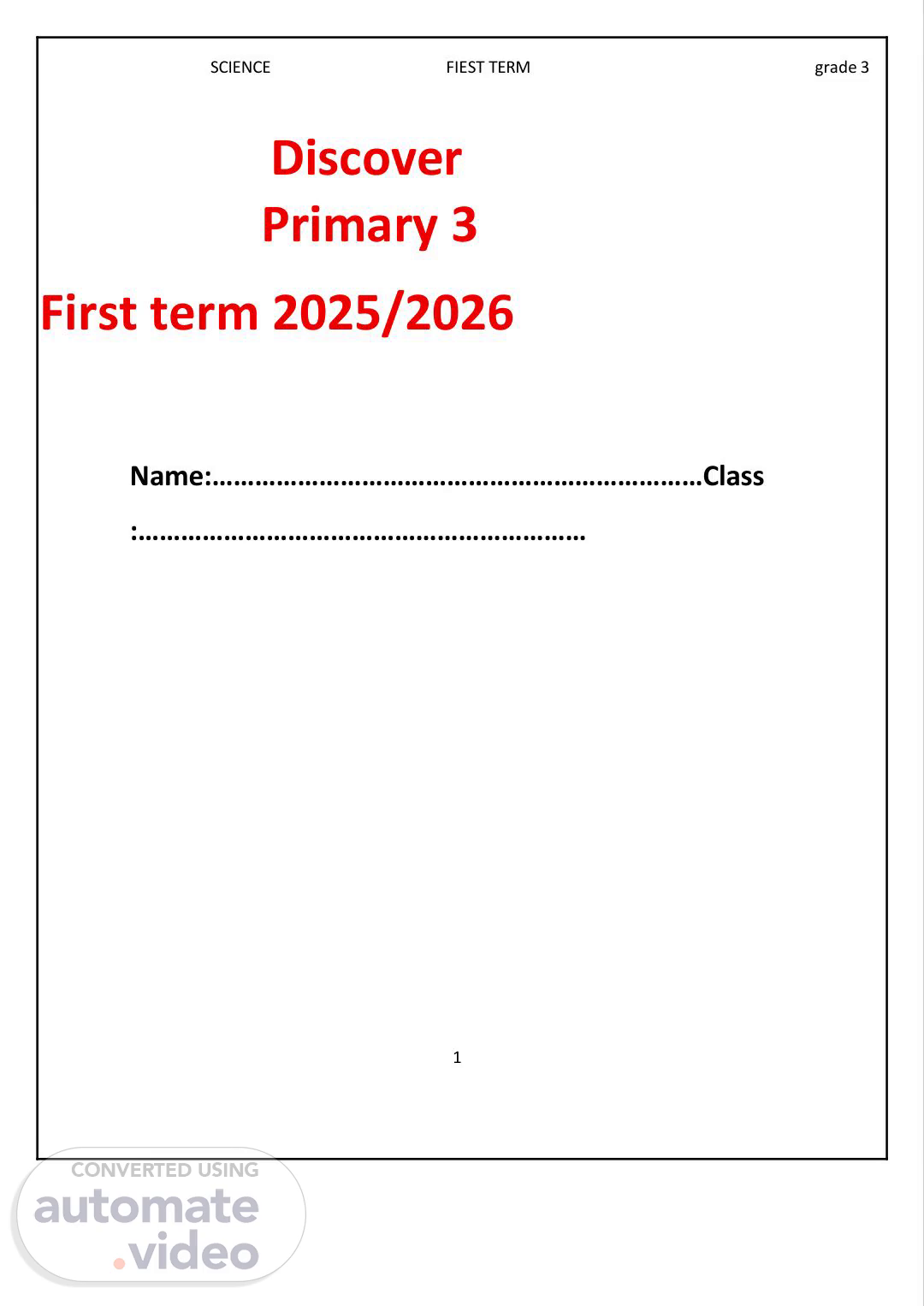SCIENCE FIEST TERM grade 3 1 Discover Primary 3 First term 2025/2026 Name:……………………………………………………………Class :……………………………………………………….