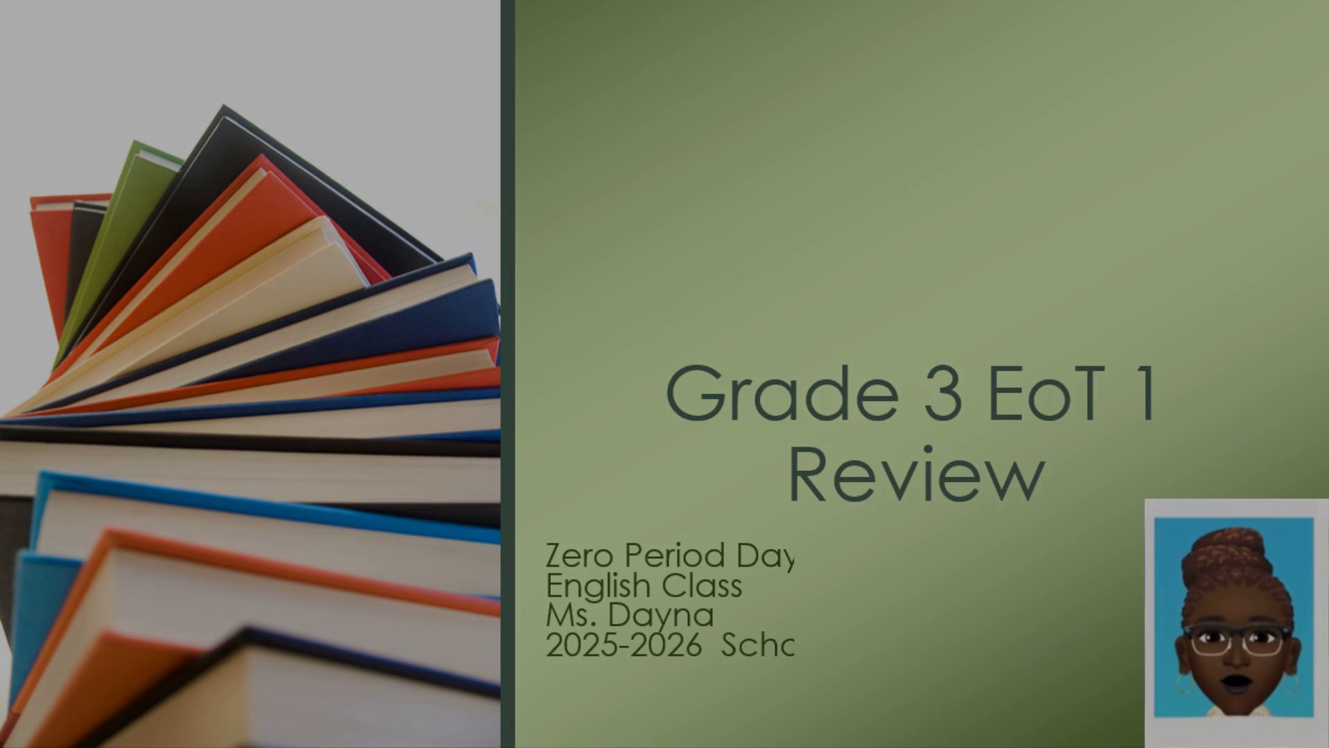Grade 3 EoT 1 Review. Zero Period Day 1 English Class Ms. Dayna 2025-2026 School Year.