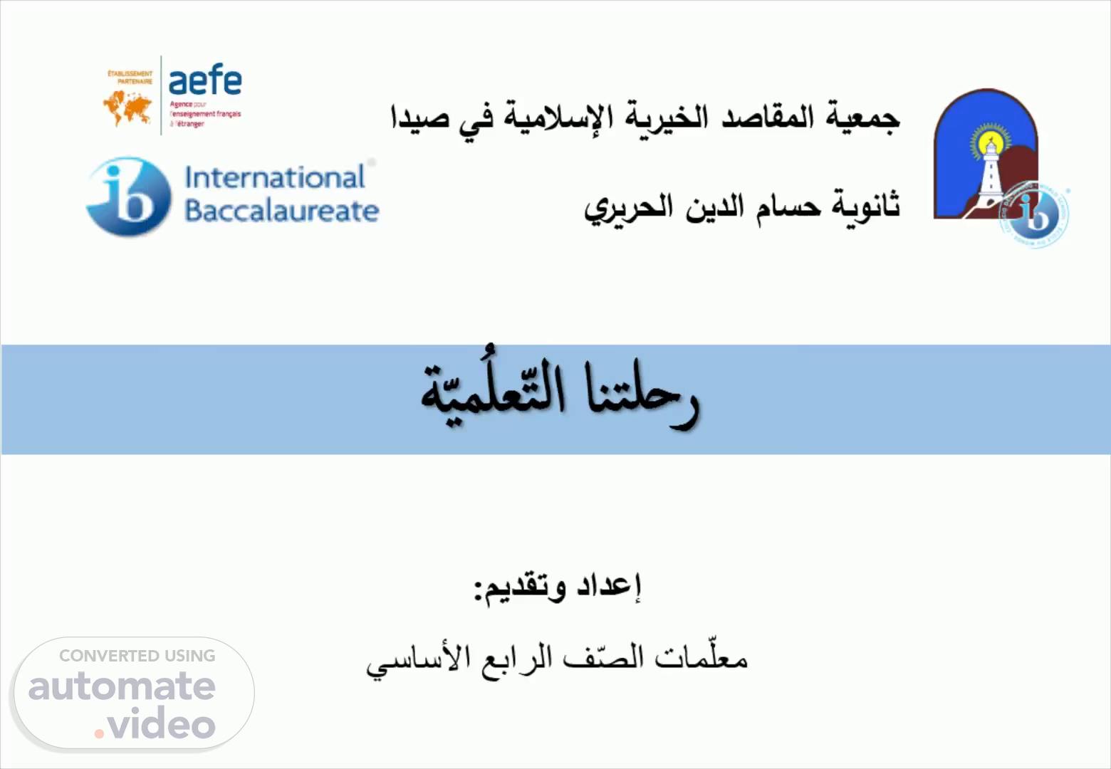 رحلتنا التّعلُميّة. International Baccalaureate. جمعية المقاصد الخيرية الإسلامية في صيدا ثانوية حسام الدين الحريري.
