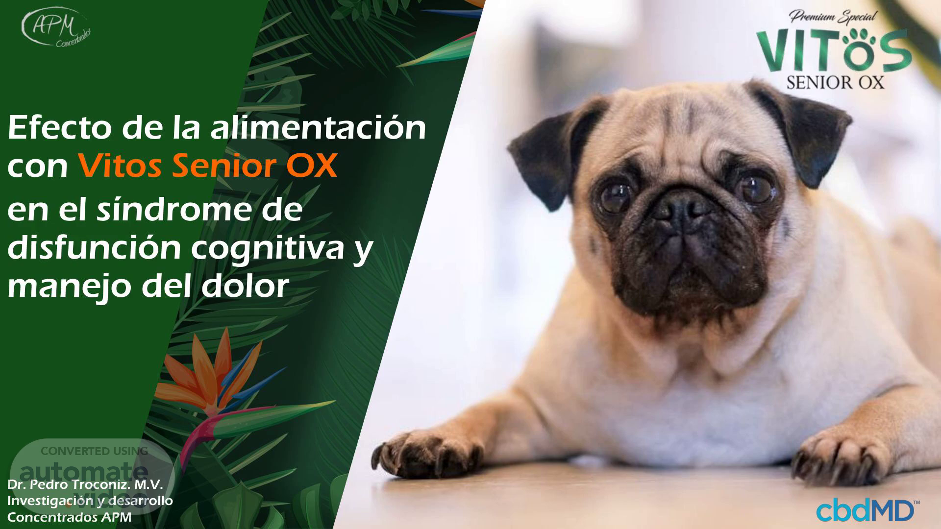 [Audio] Efecto de la alimentación con Vitos Senior OX en el síndrome de disfunción cognitiva y manejo del dolor Dr. Pedro Troconiz. M.V. Investigación y desarrollo Concentrados APM.