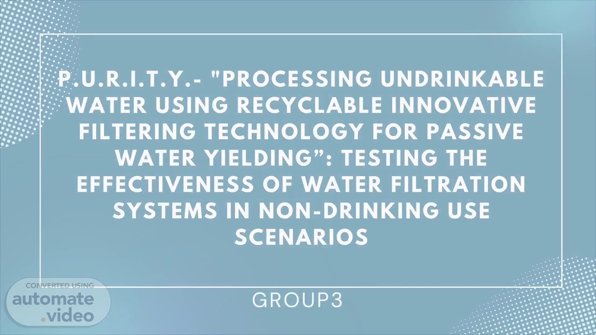 •.P.U.R.I.T.Y.- "PROCESSING UNDRINKABLE WATER USING RECYCLABLE INNOVATIVE FILTERING TECHNOLOGY FOR PASSIVE WATER YIELDING": TESTING THE EFFECTIVENESS OF WATER FILTRATION SYSTEMS IN NON-DRINKING USE SCENARIOS GROUP3.