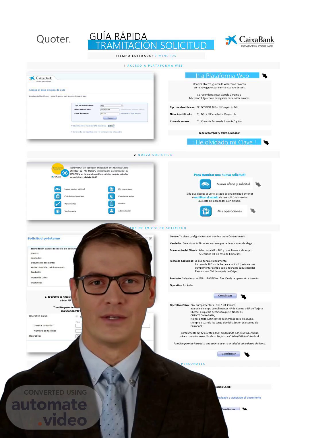 [Audio] La información bancaria y de vivienda del cliente debe ser introducida en la plataforma web de Quoter para completar la solicitud. Para clientes de CaixaBank, esta información ya está completa. Para clientes normales, debes introducir la entidad bancaria y el país y el código de control se rellenarán automáticamente. Sin embargo, debes preguntar al cliente sobre la antigüedad de su cuenta, ya que se requieren al menos 3 meses de antigüedad. La información de la vivienda habitual debe ser introducida después. Si conocemos el tipo de propiedad, lo seleccionamos, pero en caso de desconocerlo, podemos marcar la opción de familiares o padres. Si en la declaración de la renta del cliente aparece la vivienda, comprobaremos si tiene deducciones por la misma. Si no las tiene, marcamos la propiedad como "sin hipoteca", mientras que si sí tiene deducciones, la marcamos como "con hipoteca". La información laboral del titular debe ser introducida después. Seleccionaremos la actividad del titular en el menú desplegable, siendo las más comunes asalariados, pensionistas y autónomos. En el caso de ingresos fijos, debemos consultar la casilla 435 de la declaración de la renta del cliente o el líquido a percibir en su nómina. También seleccionaremos el tipo de pensión que percibe el cliente y descontaremos la paga extra en caso de no estar prorrateada. Recordemos que se requiere una antigüedad laboral de al menos 2 años para los autónomos. En caso de que no aparezcan retenciones en la nómina, cambiaremos la situación a autónomo y solicitaremos el IRPF al titular. La fecha de alta como autónomo debe ser indicada si tenemos al menos 2 años de antigüedad laboral. Siguiendo estos pasos, completaremos con éxito la solicitud en la plataforma web de Quoter..