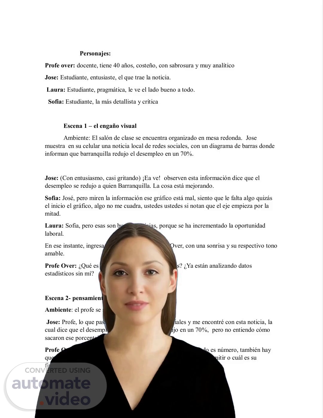 [Audio] " La narradora concluye con un tono firme, enfatizando la importancia de comprender los datos en la vida cotidiana. El profesor anima a sus estudiantes para que se conviertan en agentes de la cultura estadística, ayudándoles a pensar críticamente y resistir la información falsa.".