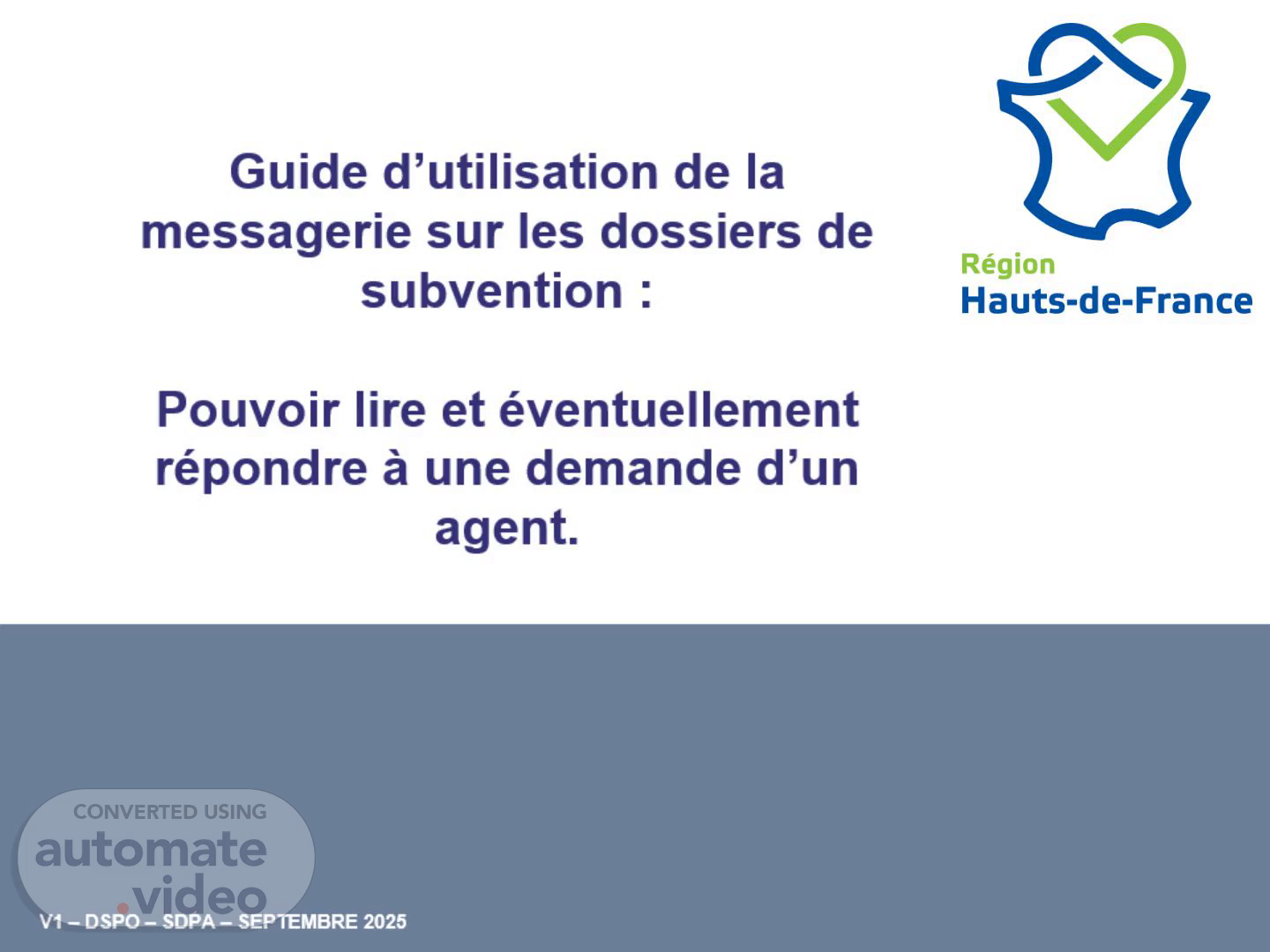 Un outil de messagerie est activé dans la plateforme des Aides et Subventions de la région Hauts-de-France. Présentation des fonctionnalités : 1/ Réception d’un message directement sur votre boite mail : Les agents peuvent vous envoyer des messages à partir du menu Echanges de vos dossiers de subventions. 2/ Lecture d’un message avec accusé de lecture sur la plateforme : Avec cette option, vous devrez vous connecter à la plateforme pour prendre connaissance du message 3/ Répondre à l’agent : L’agent peut attendre de votre part une réponse à ce message. Vous devrez vous connecter au logiciel pour lire le message et pouvoir y apporter une réponse..