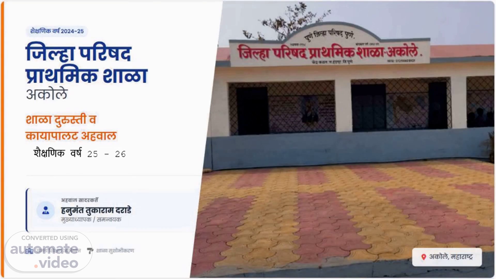 [Audio] हनुमांत दिाडे र्ि हे दोि मणहन्यापूवी अकोले शाळे मध्ये रुजू झाले व शाळे त कायापालट होण्यास सुरुवात झाली. १) र्ांदीप शामिाव दिाडे सरपंच ग्रामपंचायत अकोले तसेच उपसरपंच गिेश खाडे व त्ांचे सवष ग्रामपंचायतचे सदस्य कमषचारी यांची िेट घेऊि शाळे संदिाषतील अडचिी मांडल्या. सरपंच आणि त्ांचे सवष सहकारी यांिी शाळे मध्ये ज्या ज्या अडचिी असतील त्ा सोडवण्यासाठी पूिष सहकायष करण्याचे आश्वासि णदले 2) प्रर्थम दराडे सर शाळे चे मुख्याध्यापक विवे सर आणि सहकारी चौधरी सर यांिी शाळे मध्ये पाण्याची गैरसोय असल्याचे णिदशषिास आिूि णदले त्ािंतर सरपंच यांिी शाळे समोर असलेल्या हातपंपामध्ये एक एचपीची मोटर टाकू ि णदली व त्ासाठी पाण्याच्या दोि टाक्या उपलब्ध करूि णदल्या शाळे तील णशक्षकांिी छाि पैकी प्लंणबंग चे काम करूि शाळे समोर असलेल्या कठड्यामध्ये प्रर्थम िु लझाडांची व्यवस्र्था के ली.