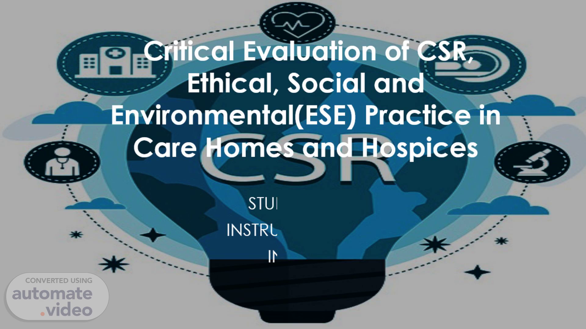 [Audio] This presentation aims to give an in-depth look at the ethical, social, and environmental (ESE) practices and corporate social responsibility (CSR) in UK hospices and care homes. The main goals are to look at the pros and cons of current ESE programs in this area, talk about how environmental management approval standards affect things, and suggest how to improve sustainable and moral business practices. Care homes and hospices are leaders in providing person-cantered, respectful care. Environmental standards try to improve cultures, but they are still focused on compliance and have a small reach (Sands Dalen, 2016). The conclusion summarises the most important findings from the analysis to show how vital ESE strategy..