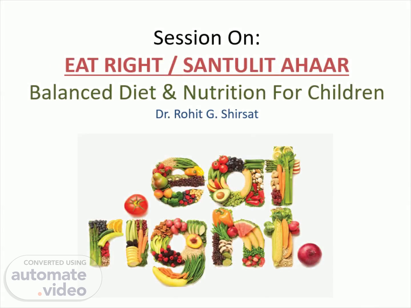 Session On: EAT RIGHT / SANTULIT AHAAR Balanced Diet & Nutrition For Children Dr. Rohit G. Shirsat.