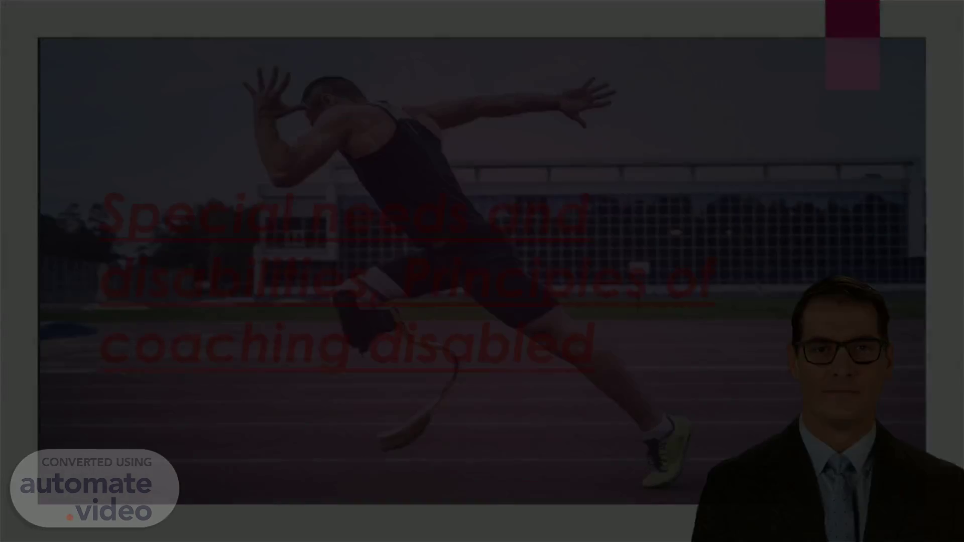 [Virtual Presenter] Good morning everyone. I'm here to discuss the principles of coaching disabled athletes with amputation above the knee of one leg. We will be examining the causes of this amputation, the considerations to be taken when training the amputee person, and the cardiovascular improvements that they can achieve by exercising on an arm-leg ergometer. Let's start..