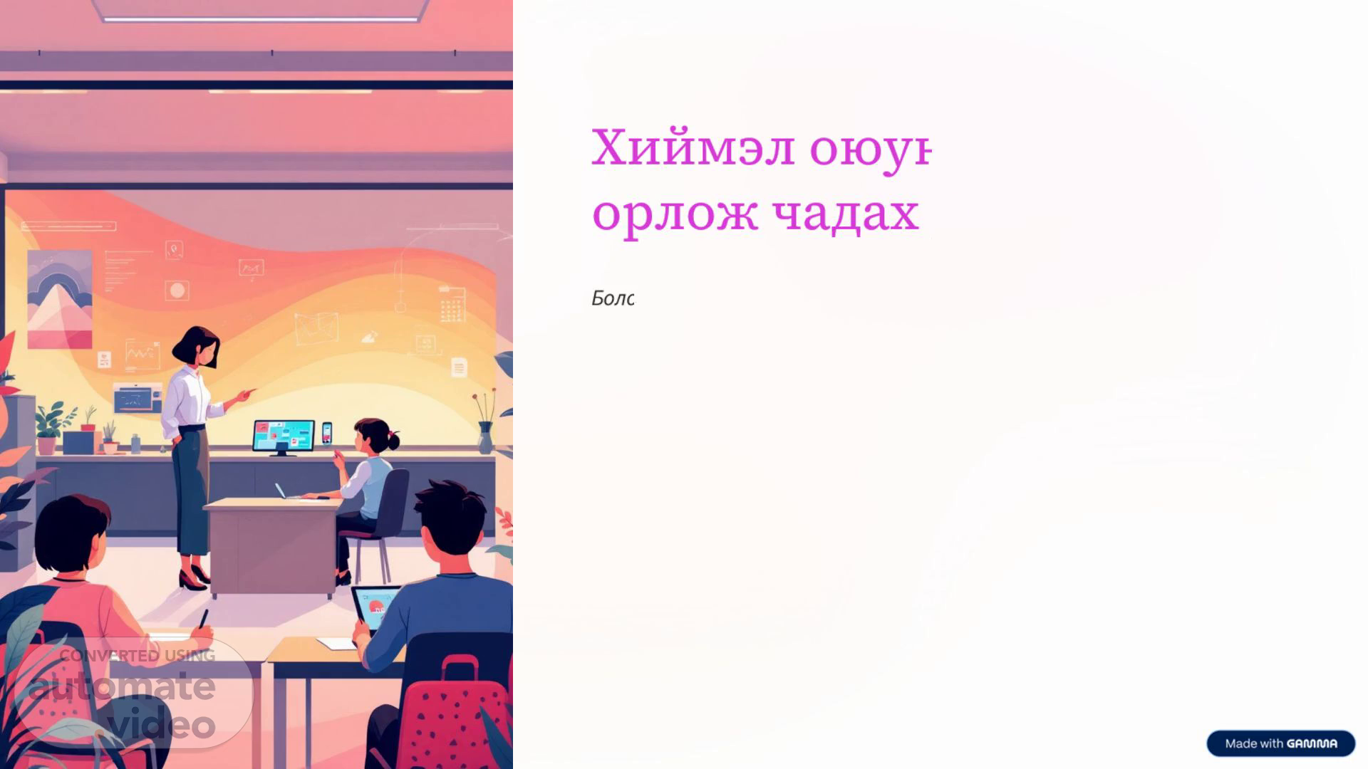 [Audio] Сайн байцгаана уу. Өнөөдрийн илтгэлийн сэдэв бол "Хиймэл оюун ухаан багшийг орлож чадах уу?" юм. Энэ сэдвээр бид боловсролын салбар дахь хиймэл оюуны үүрэг, боломж, хязгаар, болон ирээдүйн чиг хандлагыг авч үзэх болно..