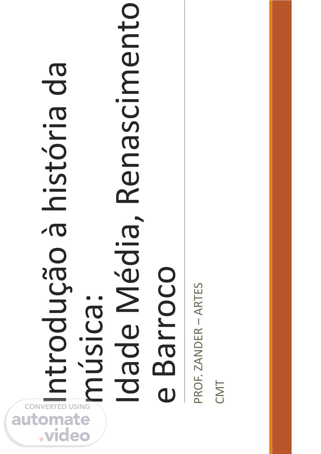 Introduqäo å hist6ria da müsica: Idade Média, Renascimento e Barroco PROF. ZANDER - ARTES CMT.