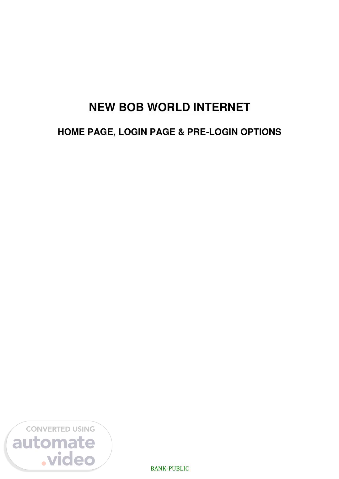 BANK-PUBLIC NEW BOB WORLD INTERNET HOME PAGE, LOGIN PAGE & PRE-LOGIN OPTIONS.