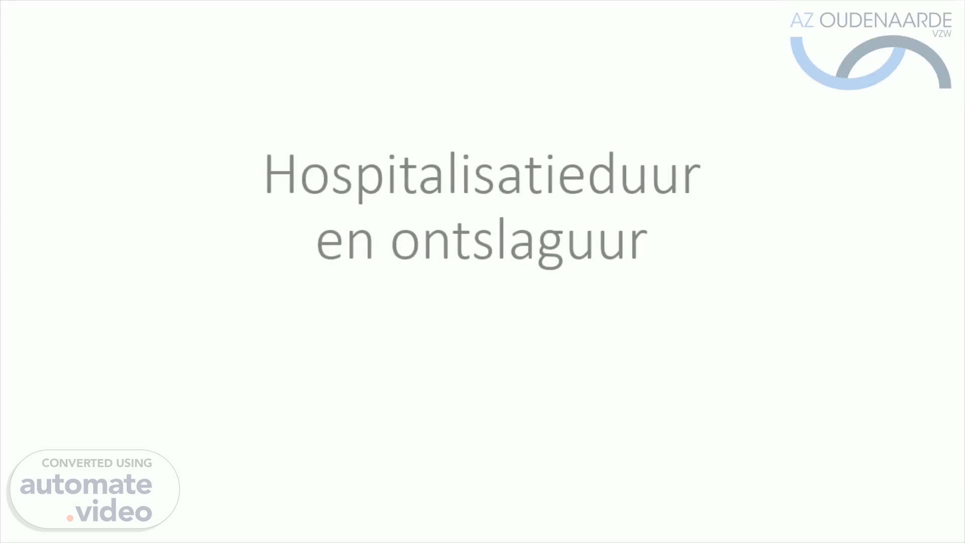 [Virtual Presenter] In deze korte voorstelling willen we het hebben over de hospitalisatieduur maar vooral over het ontslagmoment, dit kan voor of na 14u zijn , cruciaal voor de hospitalisatieduur die met 1 dag verkort of verlengd wordt.