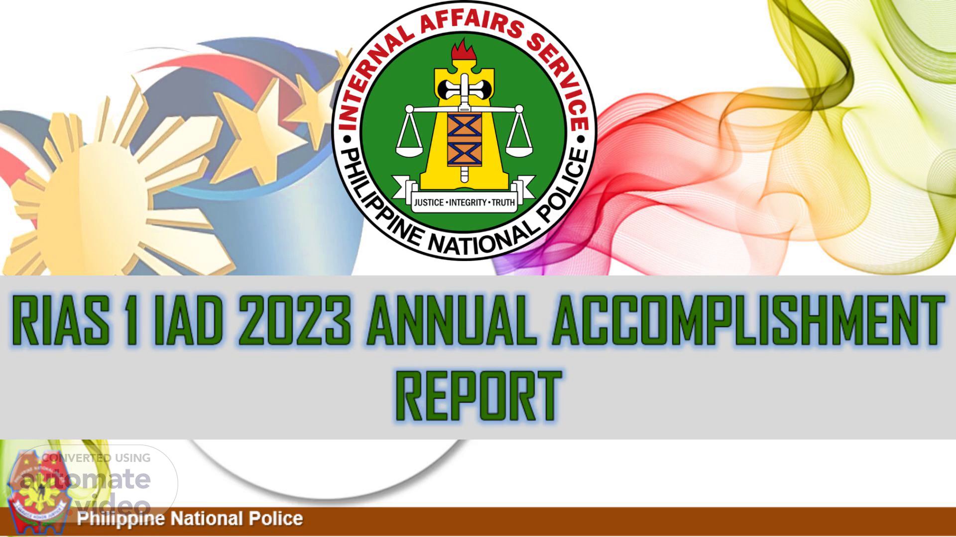 [Virtual Presenter] The PNP Internal Affairs Service (PNP-IAS) plays a crucial role in ensuring transparency, accountability, and professionalism within the Philippine National Police (PNP). This executive summary provides an overview of the accomplishments of the PNP-RIAS1 in conducting inspections and audits to promote integrity and address misconduct within the PNP-PRO1. Inclined with the purpose of the PNP-IAS inspections and audits is to assess the compliance of PNP units and personnel with established rules, regulations, and ethical standards. The scope of these activities includes evaluating the performance of PNP officers, investigating complaints against police personnel, and identifying areas for improvement through a systematic and comprehensive approach. This includes reviewing documentation, conducting interviews, and analyzing data to assess adherence to policies and procedures. The PNP-RIAS1 has achieved significant accomplishments in its inspection and audit activities. These include the identification of Non-Compliance through identified instances of non-compliance with established rules and regulations such as cases of misconduct, corruption, and human rights violations; appropriate disciplinary actions against police personnel found to violate regulations; improvement of processes: inspections and audits have highlighted areas for improvement within the PNP. The PNP-RIAS 1 has contributed to strengthening accountability within the PNP PRO1 by ensuring that violations are properly investigated and appropriate actions are taken. This has helped restore public trust and confidence in the police force and lastly, the accomplishments of the PNP-RIAS 1 in conducting inspections and audits have had a positive impact on the overall transparency, accountability, and professionalism of the PNP. However, there is still room for improvement. Moving forward, the PNP-IAS aims to enhance its capacity, streamline processes, and further strengthen its collaboration with other PNP units and external stakeholders. In conclusion, the PNP-RIAS1 has made significant accomplishments in its inspection and audit activities, contributing to the promotion of integrity and accountability within the PNP. The continued efforts of the PNP-IAS in conducting inspections and audits will be crucial in maintaining transparency, addressing misconduct, and upholding professionalism within the Philippine National Police, PRO1..