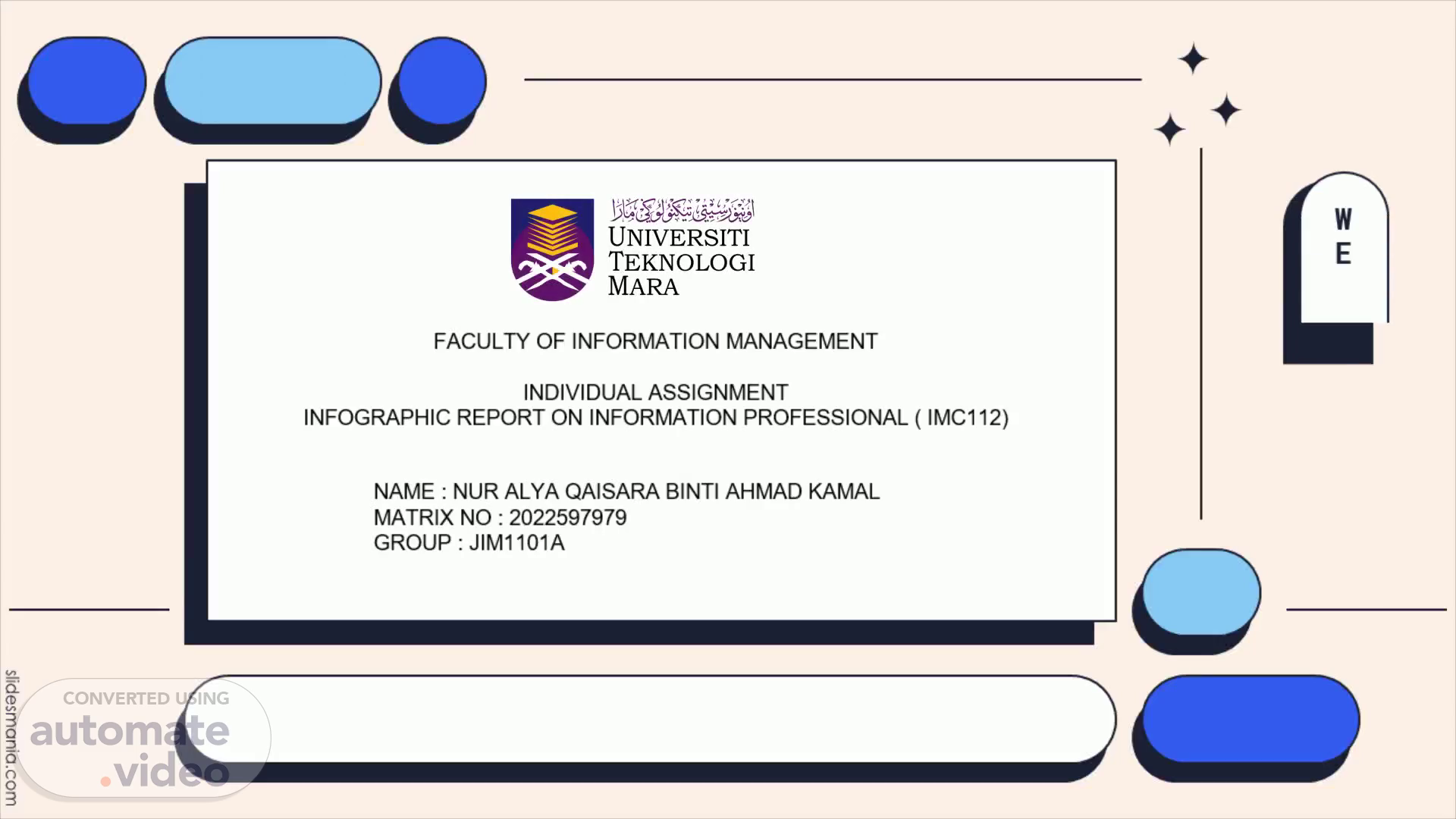 WELCOME. 1. FACULTY OF INFORMATION MANAGEMENT INDIVIDUAL ASSIGNMENT INFOGRAPHIC REPORT ON INFORMATION PROFESSIONAL ( IMC112).