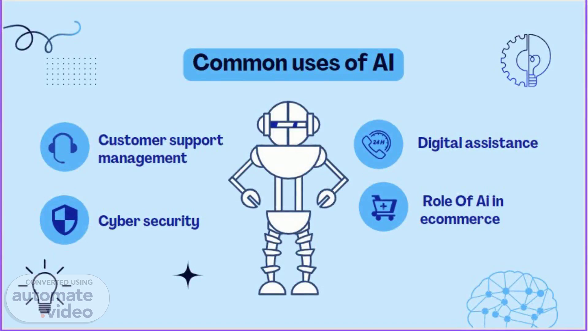 Common uses of A1 Customer support management Cyber security Digital assistance Role Of Ai in ecommerce.