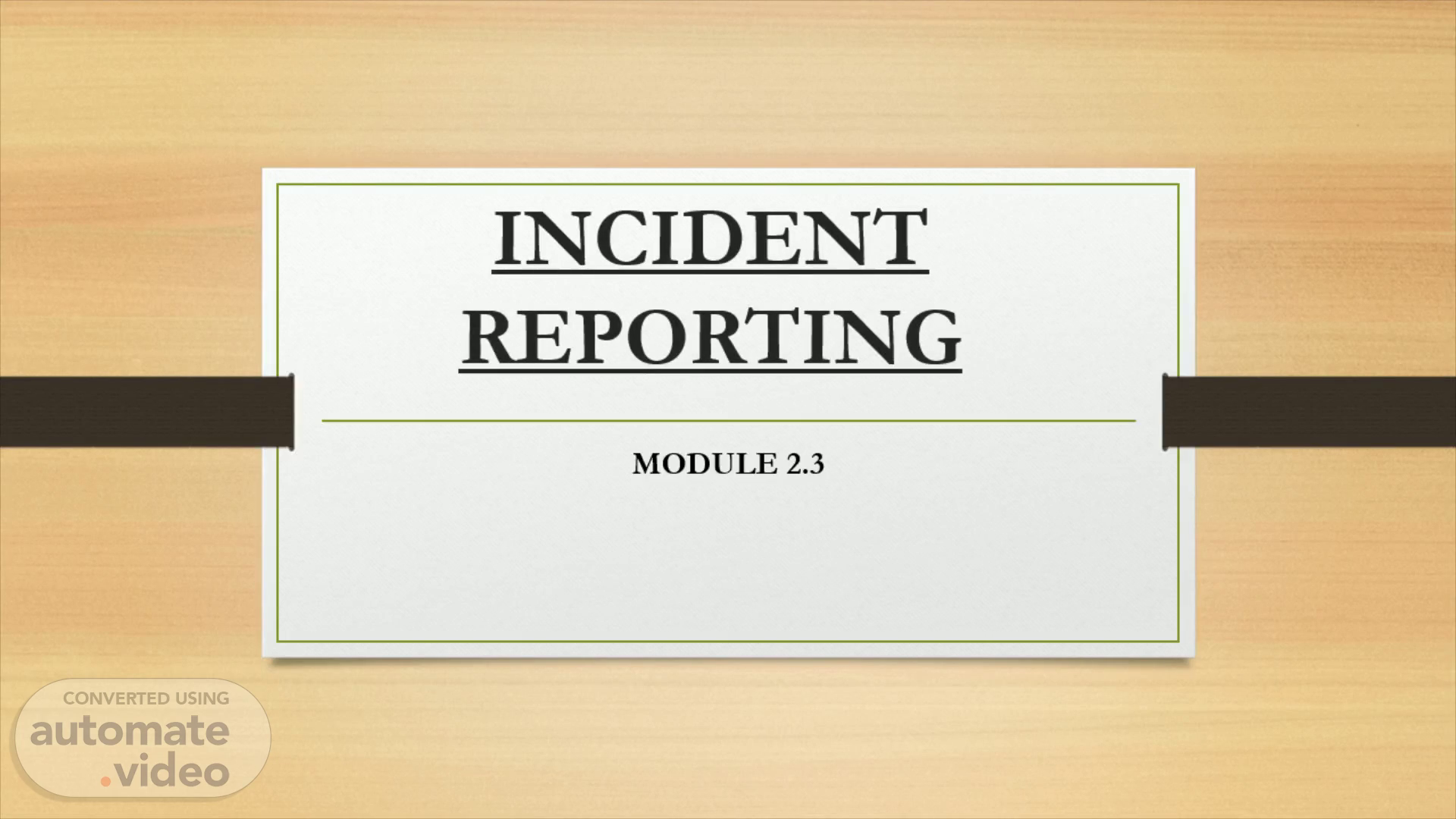 INCIDENT REPORTING. MODULE 2.3.