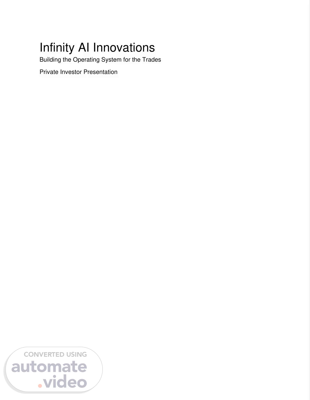 [Virtual Presenter] Infinity AI Innovations Building the Operating System for the Trades Private Investor Presentation.