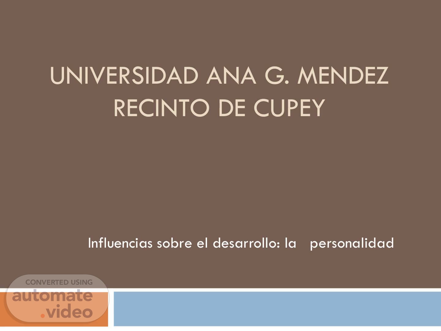 UNIVERSIDAD ANA G. MENDEZ RECINTO DE CUPEY Influencias sobre el desarrollo: la personalidad.