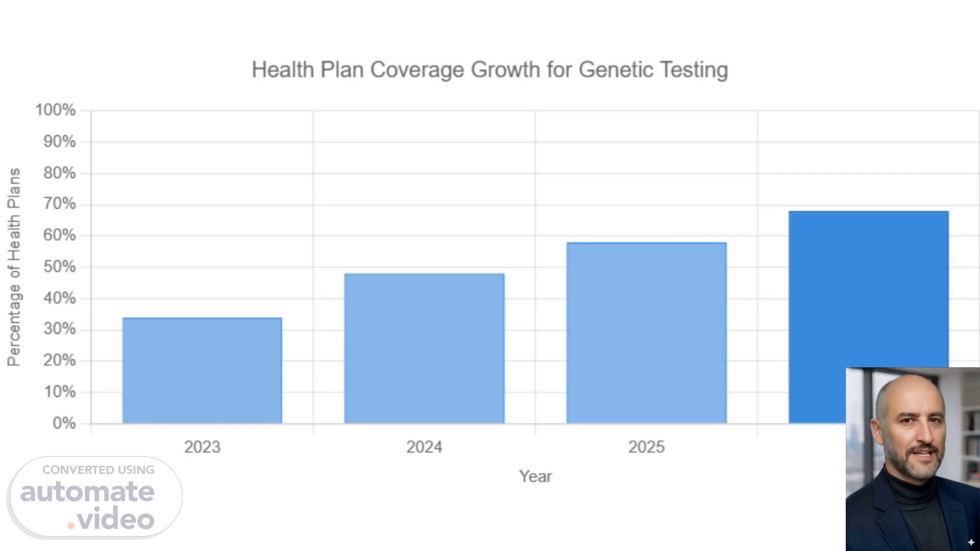 [Audio] The coverage of different health insurance companies for the "Per—mage of Plane" procedure varies greatly. Anthem offers partial coverage, which may not cover the entire cost. However, for patients with Familial Hyperophic Syndrome (FH), Anthem offers full coverage. Humana provides partial coverage as well, but they have a special provision for select BRCA patients. Kaiser Permanente does not provide any coverage for this procedure. The overall market coverage for this procedure is currently 34%. However, in just three years, the market coverage has doubled to 68%. The growth of market coverage is a positive sign for those who may need this procedure in the future. Many people are seeking alternative treatments for various medical conditions. With the increasing demand for these procedures, there will be more options available for those in need of this treatment. As a result, the competition among health insurance companies will increase, leading to better coverage and lower costs for consumers. Furthermore, the development of new technologies and treatments will continue to improve the effectiveness of these procedures. Overall, the growth of market coverage is a promising trend that could benefit many individuals and families..