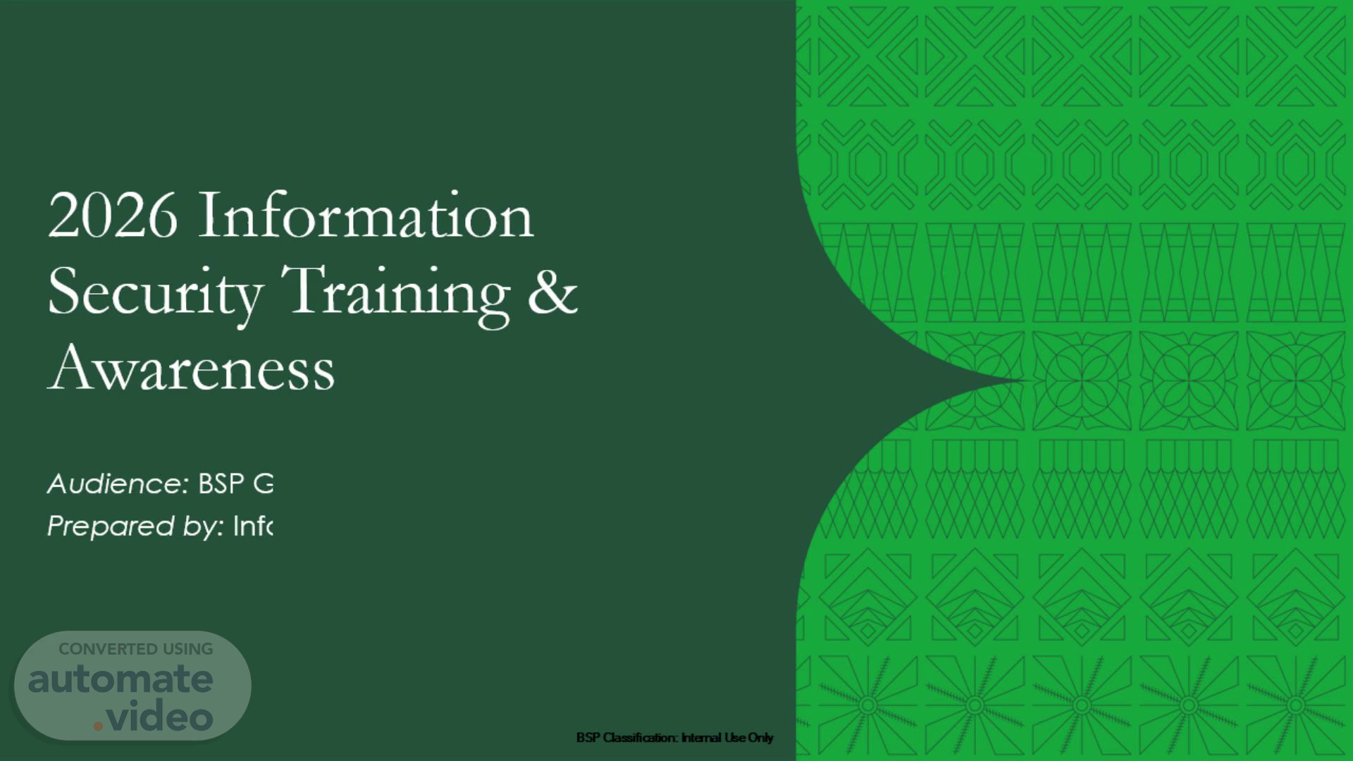 2026 Information Security Training & Awareness. Audience: BSP General Staff (PNG & Pacific Markets) Prepared by: Information Security Business Unit.