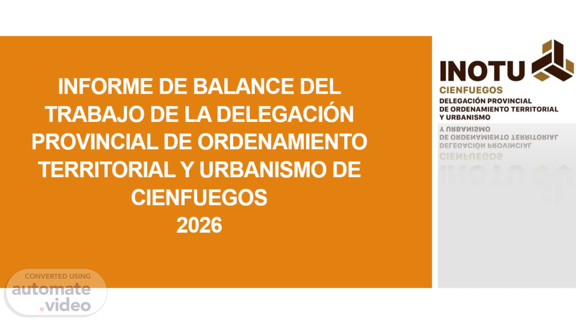 [Audio] Señor presidente, hoy vamos a presentar el balance del trabajo de la Delegación Provincial de Ordenamiento Territorial y Urbanismo de Ciénfuegos, para el año 2026. Para ello, hemos establecido varias metas y indicadores que se resumirán en este informe. Entre ellas, podemos mencionar la mejora en la atención a la población, la implementación de sistemas de pago digital y la optimización de procesos. Estos objetivos se han establecido teniendo en cuenta las tendencias actuales y las necesidades de nuestra comunidad. Nuestro objetivo es garantizar un servicio eficiente y de alta calidad a todos nuestros ciudadanos..