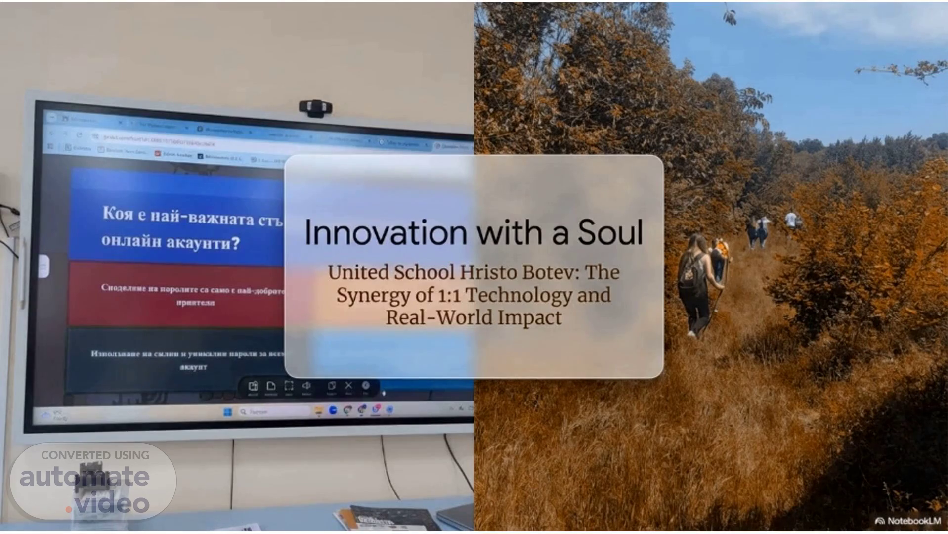 KOH e CTb Innovation with a Soul 0HJ1aiiH mcayHTH? CitQgeRuue gopoarre Ca cano c aaU•g06por Synergy of 1:1 Technology and upgnte:sn Real-World Impact Hsuoasøaue na cuanu yunxa.muu napo-'tu ya act anyur NotebookLM.