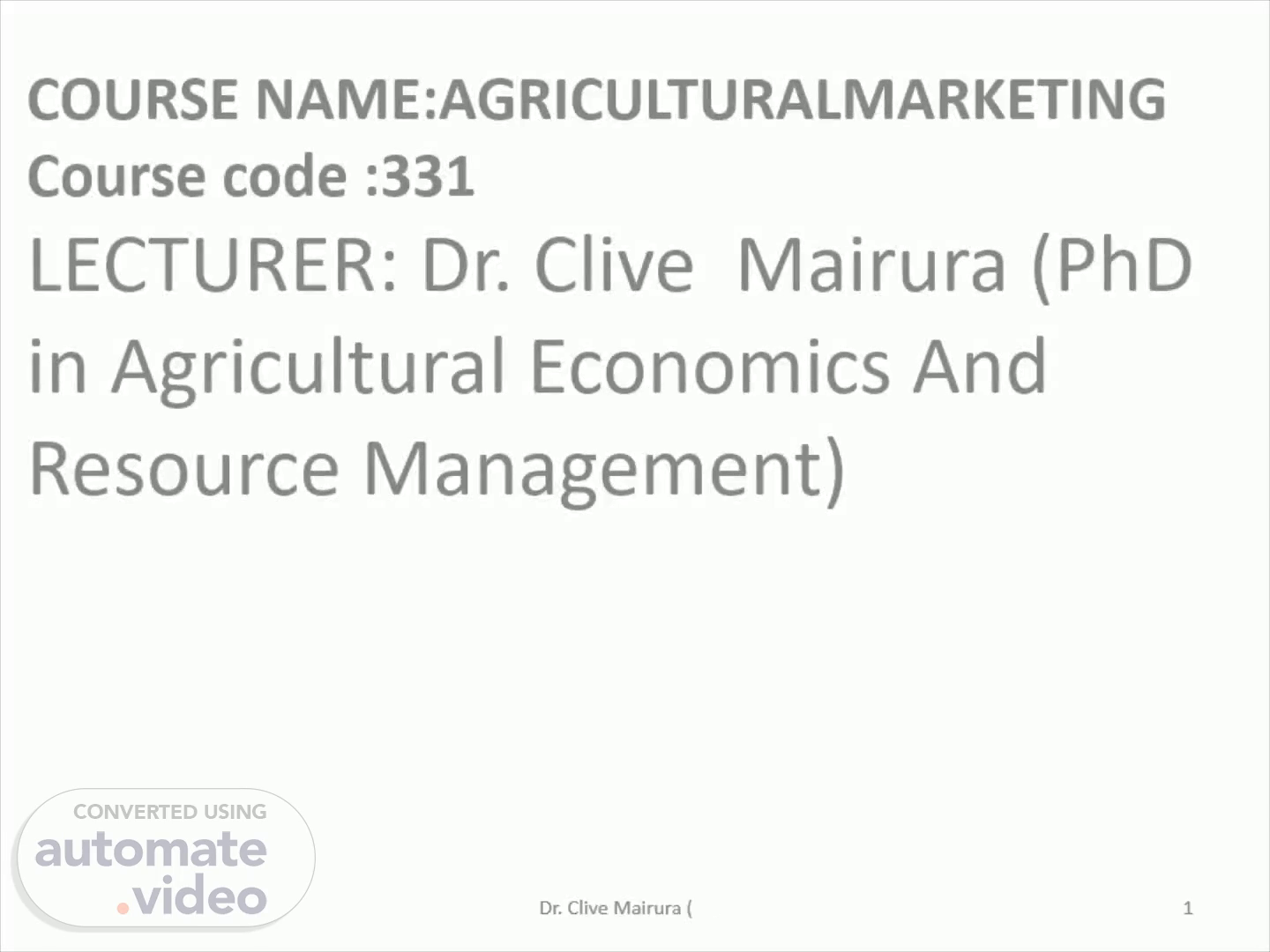 COURSE NAME:AGRICULTURALMARKETING Course code :331 LECTURER: Dr. Clive Mairura (PhD in Agricultural Economics And Resource Management).