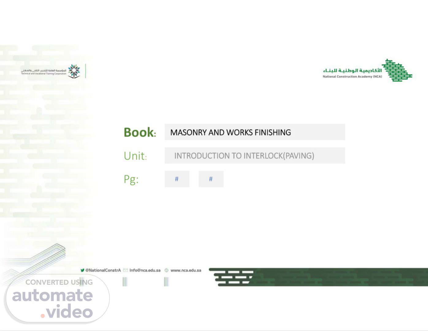 Book: Unit: Pg: MASONRY AND WORKS FINISHING INTRODUCTION TO INTERLOCK(PAVING) # #.