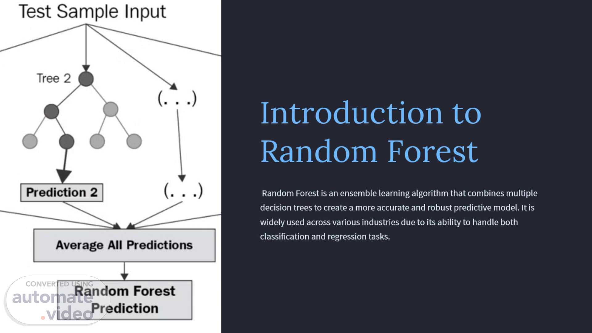 [Audio] Introduction to Random Forest Random Forest is an ensemble learning algorithm that combines multiple decision trees to create a more accurate and robust predictive model. It is widely used across various industries due to its ability to handle both classification and regression tasks..